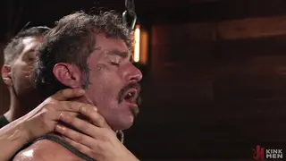 Es ist ein Men On Edge Newcomer Triple Threat mit Muskelstiel, Luke Rex unter der totalen Kontrolle von Regisseur WoodBound und seinem Sub Marco Star. Zuerst bereitet WoodBound den gebundenen und fast nackten Luke mit Müllgesprächen vor, während er seinen Mund aufreißt und ihn sich biegen lässt, während er seine Bauchmuskeln schlägt. Er arbeitet über seine nippel und schlägt seine bälle. Nachdem woodbound luke mit einem ballknebel anpasst und hart an dem wachsenden schwanz zerrt, der seine briefs belastet, lässt er marco eintreten und auf sein knie steigen. Er reißt lukes unterwäsche auf und entfesselt seinen schwanz. WoodBound ärgert beide Jungs, indem er über Lukes Schwanz und Bälle arbeitet und Marco anweist, sie zu lecken und dann herumzuschlagen, aber er beraubt ihn, ihn Luke saugen zu lassen. Bald wird luke an eine bondage-bank geschnallt, seine beine auseinander gespreizt, seine bälle gefesselt. Marco spielt mit seinem schwanz, als woodbound ihn küsst, erstickt und spuckt. Er passt luke mit einem dildo-gag und nachdem marco es saugt und reitet, schneidet woodbound lukes schwanz so gut er kann und wie er sich windet. Er bringt marco nach vorne und benutzt mund und hals des subs, um luke noch mehr zu beschneiden. WoodBound macht dasselbe mit Luke und legt ihn auf die Knie, um Marco zu saugen und ihn zu beschneiden. Marco kommt ihm schmerzlich nahe, aber WoodBound beraubt ihn wieder und erinnert ihn daran: Luke ist ihr Fokus. Während WoodBound hält Luke an der kehle, marco folgt befehlen und streichelt ihn mit zunehmender geschwindigkeit und lässt ihn schießen und melken.
