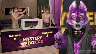 ""Mystery Boxxx" Game - Nathan Vs Valentin": Hosted by a mischievous virtual fox, Mystery Boxxx is a zany game that blends discovery, surprises, laughter, suspense, culture, and sex! Two contestants must first blindly guess which objects are hidden in the mystery box and eliminate the imposter object before battling it out in a quiz focused on sex and LGBT culture. The victor not only earns glory, but also gets to choose two kinky accessories they wish to bring into the love room for experimentation with their opponent. In this episode it's Nathan Belair and Valentin Meunier who face off in Mystery Boxxx before embarking on a hot sex session with a third "bonus" partner won during the game: Felix Lopez. The three twinks are going to experiment with the accessories chosen by the winner, including a nicely sized double dildo before fucking in turn, exchanging roles and positions. To end on a high note, Nathan and Valentin flood Felix's face with powerful ejaculations. Valentin Meunier (aka @ValMeunierFT).