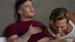 Hung Boys Trevor Brooks aparece en la casa de su amigo Dom King y lo encuentra llorando en un nido de tejidos sucios. Trevor le da a Dom un hombro para llorar sobre su ruptura, pero una vez que se entere de que Dom's GF se fue porque nunca quiso follarla, tiene un indicio de lo que el problema podría ser... y tiene la solución. Dom ansiosamente apesta La polla de Trevor, y Trevor sopla a su amigo como si hubiera estado deseando hacerlo durante siglos, entonces toma un maldito estilo perrito. Los paseos de abajo que gran polla, entonces Dom lo folla en posición de cuchara y libras su agujero misionero hasta que saca y se acuesta. ¡Parece que ha superado su ruptura!