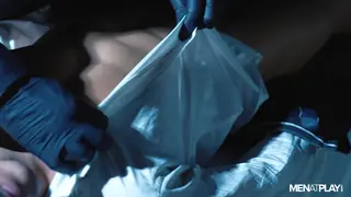 Después de abrir la bolsa del cuerpo con Jonathan dentro, Ross cuida el cuerpo cojeado antes de cortar las piernas del pantalón de los pantalones. Con los pantalones cortados y desgarrados, el Coroner revela la polla suave de Jonathan, pero todavía masiva, que parece estar despertando lentamente. Al admirar el cuerpo, de repente Jonathan despierta y no puede resistir al papi de pelo salado que se eleva sobre él. Los dos sementales comienzan a hacer apasionadamente antes de que Ross sopla la polla brasileña y come el agujero de Jonathan.