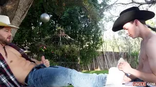 After Johnny’s steamy run-in with Texas out in the dusty desert, he decides to give the young twink a shot at working on his ranch. Broke, horny, and a little curious, Texas takes the job and starts working nonstop for his new boss/lover under the scorching sun. After a while, he realizes there’s way more to do on that ranch than he expected, but he still wants to show Johnny how grateful he is for the chance to earn an honest day’s work. However, after catching his new employer gazing at his smooth body a couple of times and locking eyes with each other, he quickly realizes that Johnny has a different task for him in mind. The blazing sun shines over the two lovers in the deserted ranch as Texas kneels to give Johnny the blowjob of his life and go for a ride on his thick and veiny dick.