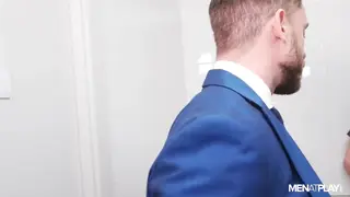 Un tipo in giacca becca il corriere che si tocca e lo trasforma in scopata bollente.