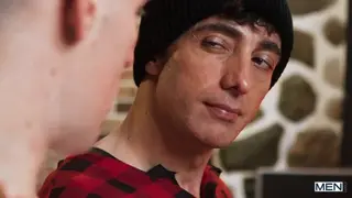 Hungry For His Baguette: After a long day in the winter wilderness with their girlfriends, Liam Alyesto gets more than just warmed up as he watches Malik Delgaty take off his coat. Liam opens the butt flap in his onesie and flashes Malik his ass, and when they sit down for some fondue he shows the muscular hunk just what he has in mind on the big baguette, stroking it suggestively and sucking the end. While the women are in the kitchen, Liam gives Malik a hand job under the table, then slips off to the bedroom. Malik follows, finding Liam waiting on the bed on his hands and knees, ass out. Malik gives the bottom what he wants, penetrating that hole. Liam sucks Malik, then the guys fuck in spoon position before he rides the top. Liam cums as Malik drills him on his back before taking a delicious, drippy load on his face.