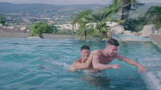 Poi, senza nessun'altra parte, i due tipi muscolosi fanno un salto di scena nella piscina e intorno finché entrambi gli uomini sono drenati con un sorriso sul viso.