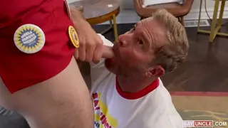 Greg has an upcoming charity event, and he needs all the help he can get. He tries to convince his stepson Caden to participate, but the boy isn’t particularly interested. It’s not that he’s not into charity, but he has some doubts related to his stepdad’s marketing methods. He wants his stepson to wear a tight costume to see if they can attract people to buy lots of ice cream and hot dogs. Caden tries the outfit reluctantly, making his ass stand out. Greg notices his boy’s cute tushy and starts playing with it. Suddenly, the pervy stepdad reaches out for his stepson’s crotch. Caden feels the [censored] rushing into his cock as his stepdad starts rubbing it. Soon, ice cream and hot dogs are the last thing on Caden’s mind as he enjoys his stepdad’s cock-sucking skills. After all, helping Greg out is not such a bad idea if he gets to unwind first by creaming his stepdad’s hole before the event…