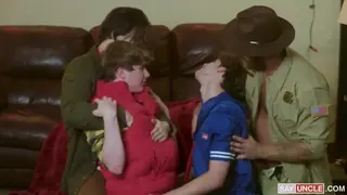 Stranger Twinks (Gay Porn Parody): Chapter Two - The Beast with Four Backs: With Nicohals and Archer still stuck in an alternative realm, Brogan and Rob are trying to figure out how to bring them back home safely. When they find out the boys are trying to reach out to them, they devise a communication system with the Christmas lights. The message is clear: sex is the only way to save them. Rob drops to his knees and swallows Brogan's huge cock in the hopes of breaking the curse that keeps their boys away from home. Suddenly, Archer and Nicholas materialize in the living room. Reunited, the four share an emotionally horny moment to celebrate. Series: Twink Trade. Brogan (aka @broganxbroganx).